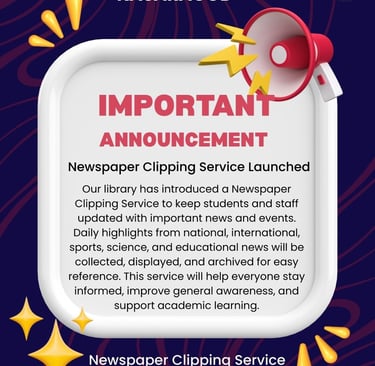 Visit us for the latest announcements and notifications regarding library services and events. Stay informed and engaged with our community.